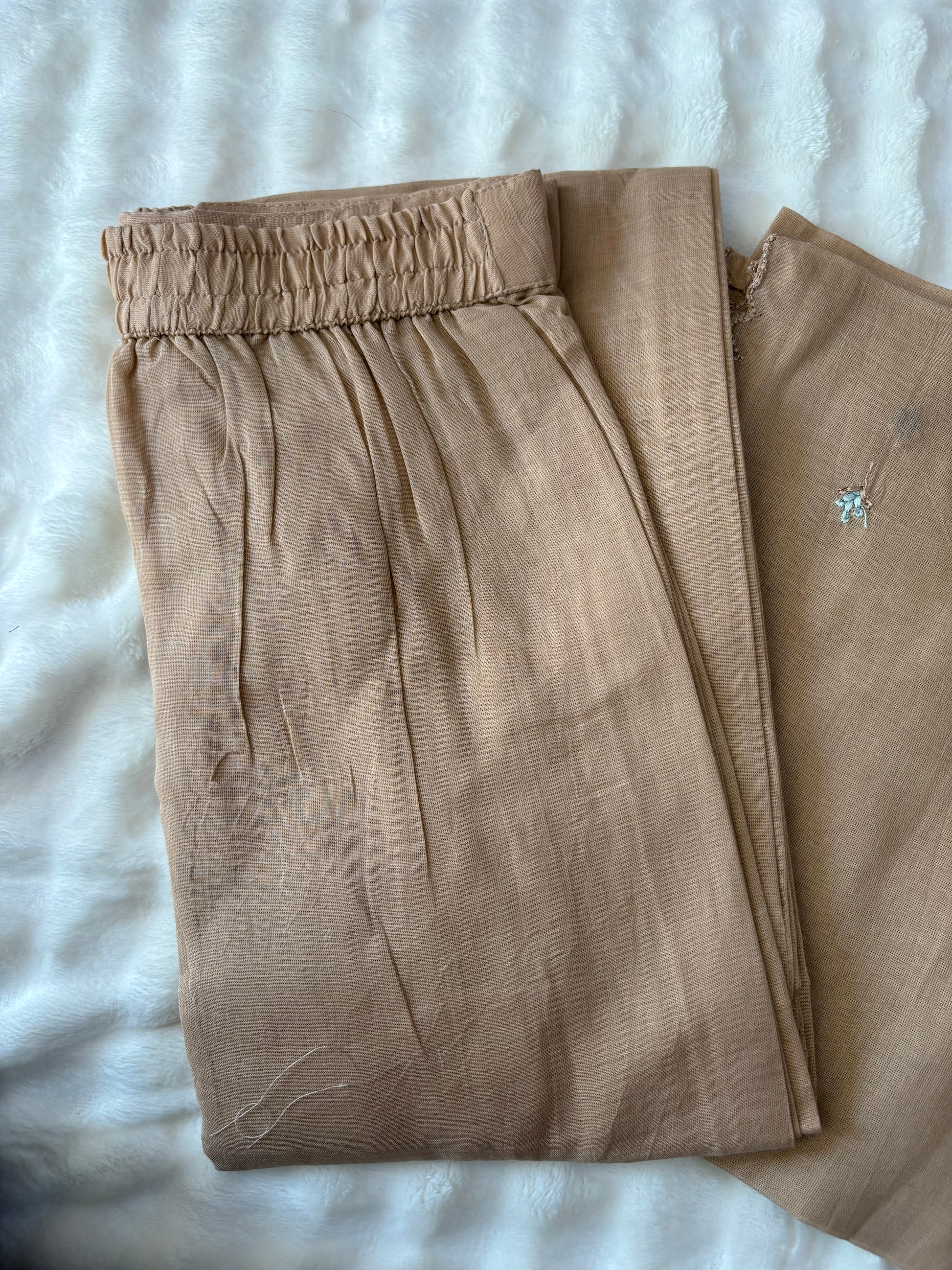 🥂 Beige Mul Chanderi set-3 Pcs Suit